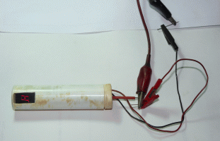 1- Con dos hilos con sus clips de cocodrilo, uno rojo, al positivo del dispositivo bajo examen y otro clip negro a masa. 2- Con dos baterías de botón de 3V, conectadas en serie o si es posible una batería de 5'5V. |